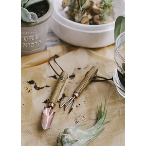 Traditional carbon steel mini garden tools finished with a decorative copper plating.- perfect for tending your pot plants!