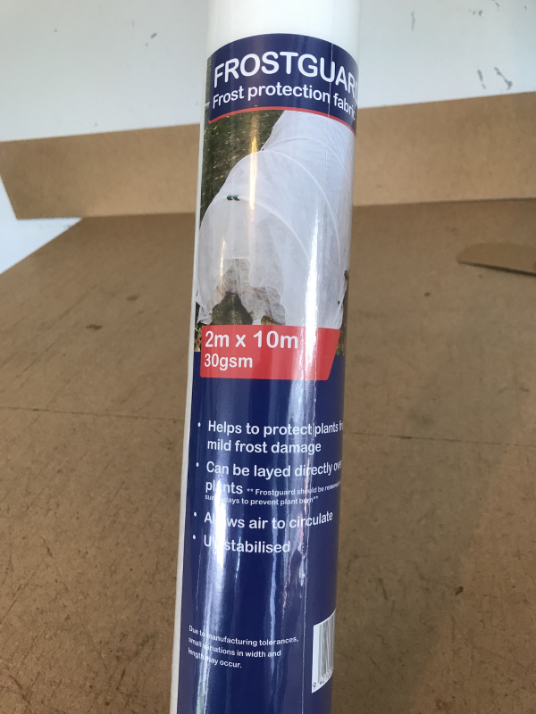 This frost protection fabric is handy to have in the shed for those times when you need to cover any plant susceptible to frost. Place over cloche hoops, or lay directly over plants, or soil. Allows air to circulate.